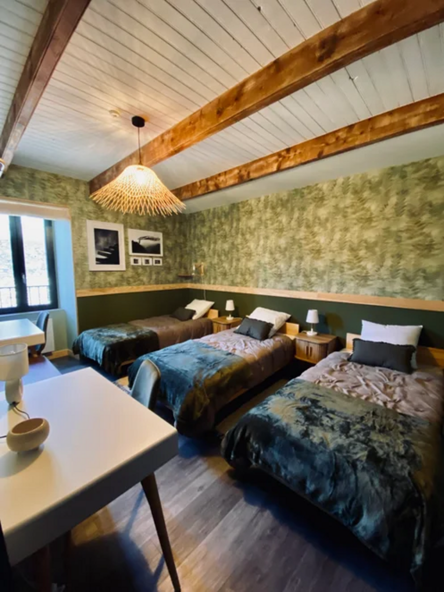 🏡 Le gîte dispose de deux chambres doubles, d'une chambre triple et d"un dortoir de 6 personnes. Les salles de bain et WC sont partagés dans le gîte.
