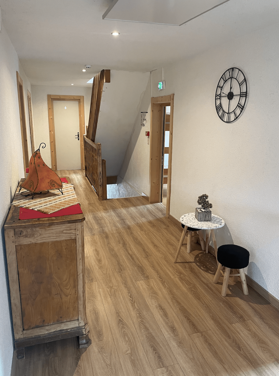 🏡 Le gîte est composé de 13 chambres avec vue montagne pour plus de 40 personnes. C’est une ancienne ferme rénovée en pleine montagne avec un vaste extérieur pour que les jeux extérieurs et les départs en activités pleine nature !